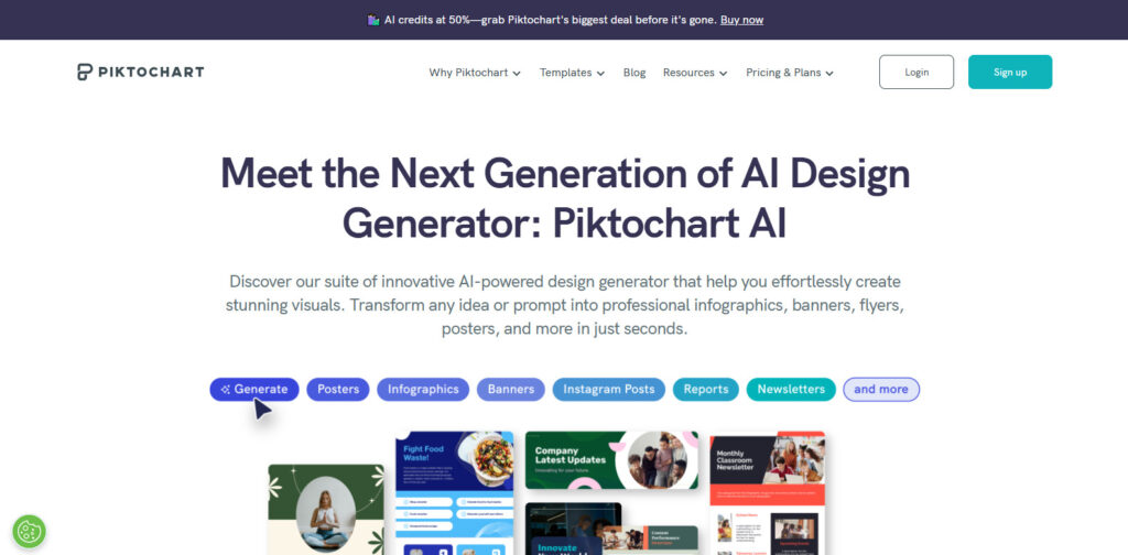 • The tool includes AI-powered content generation for headlines and body text within designs.