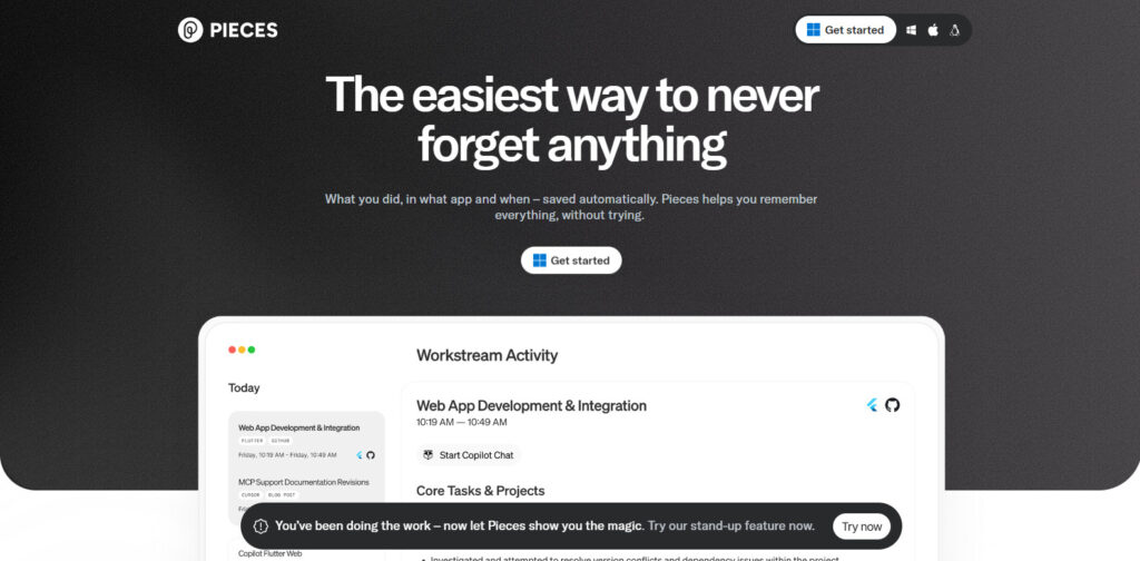 Pieces manages, saves, and reuses snippets across projects. AI enhances core workflow rather than replacing it.