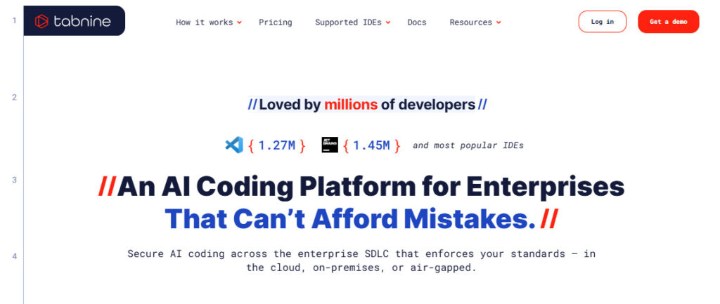 | Tabnine | Privacy-focused | Multiple IDEs | Yes | Local deployment with air-gapped options |