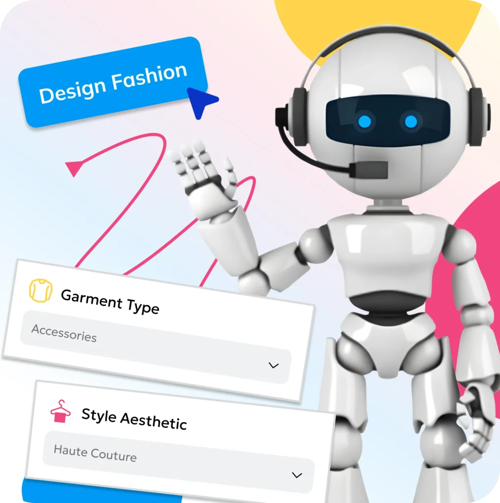 Insira sua ideia de design, estilo, mercado-alvo, tipo de peça e visual desejado no aplicativo de design de moda.