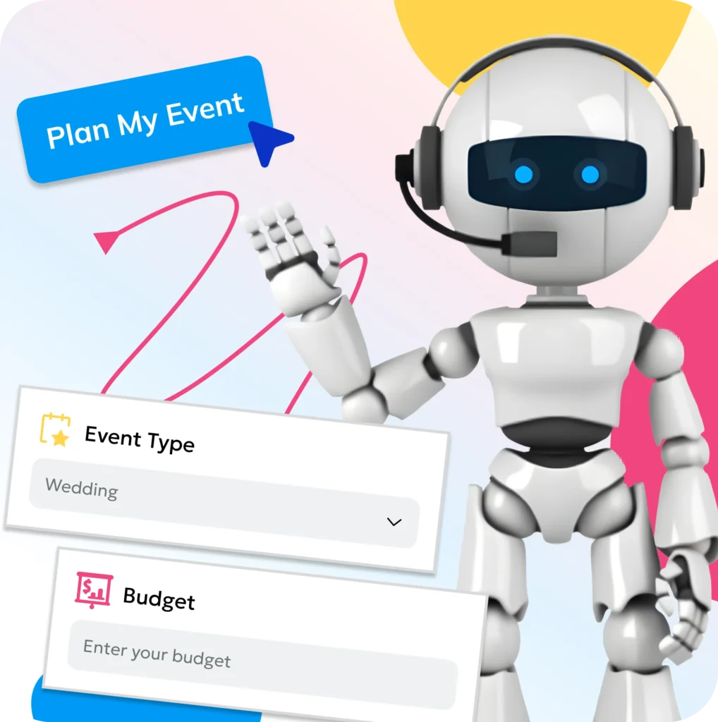 Enter your event type, date, venue, estimated number of guests, and budget into the AI event planning software.